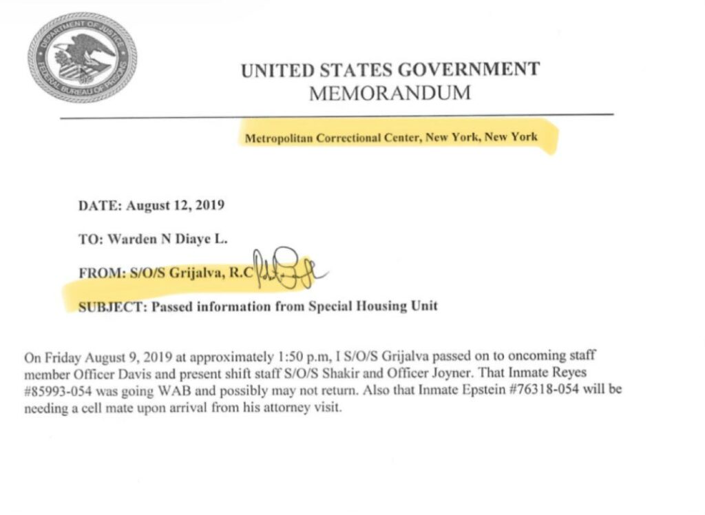 Roberto Grijalva, an officer at the Metropolitan Correctional Center in New York has been identified as the anonymous prison employee who posted on 4Chan claiming Epstein left his cell Friday evening shackled in a medical wheelchair while at the same time an unauthorized trip van arrived at the prison, which he believes took Epstein away the night BEFORE news broke of his death. The day after Epstein’s death, U.S. Attorney Geoffrey Berman of the SDNY opened a Grand Jury proceeding and subpoenaed 4Chan, Apple, AT&T and Citibank for records aiming to uncover Grijalva’s identity following the anonymous 4Chan post. Grijalva’s name is not redacted on his bank records included in the SDNY subpoena response from Citibank for his 4Chan post, and ties to the same Prison Officer Roberto Grijalva whose statements were released as part of the prison’s investigation into Epstein’s death. This is HUGE.